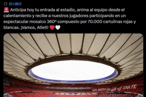马竞官方:请球迷在对阵巴萨时提前入场,组成大型TIFO迎接球员
