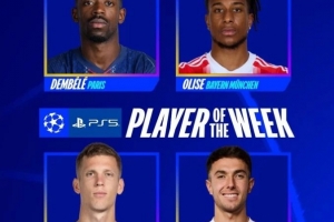 欧冠官方本轮最佳球员候选:登贝莱、奥利塞、奥尔莫、苏维门迪