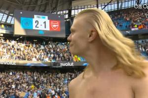 魔人切换金发美人形态!赛后哈兰德脱去上衣散开长发尽情庆祝!