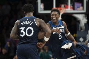 体育资讯4月21日讯 系列赛G2,森林狼客场再战掘金,赛前首发阵容出炉: